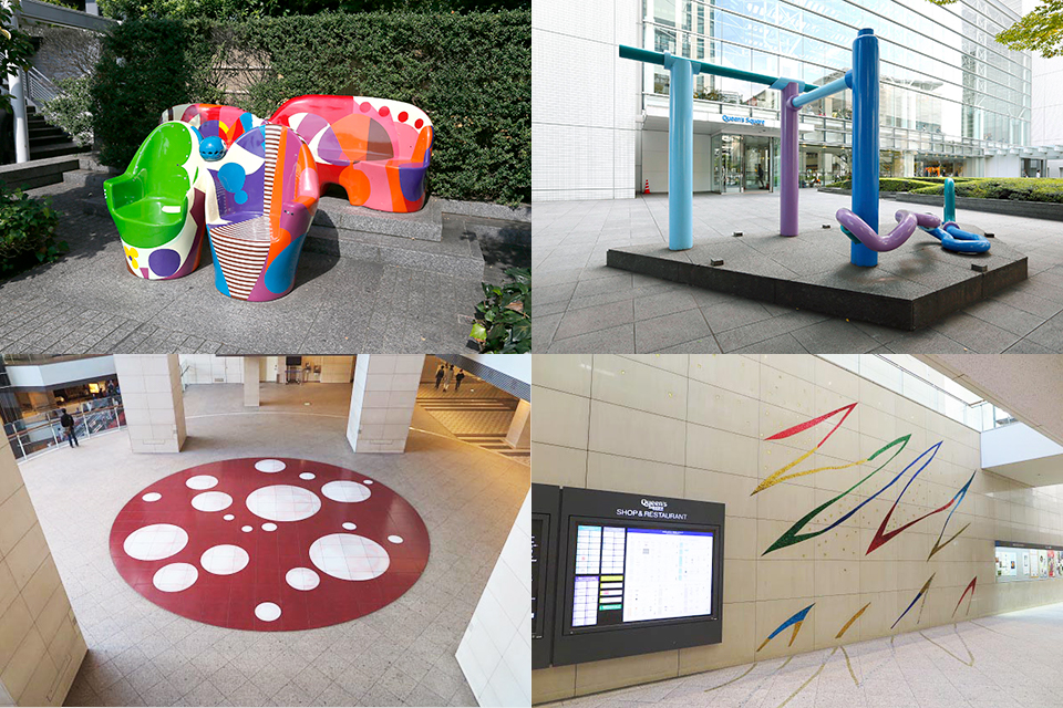 クイーンズスクエア横浜の内外には、建物の一部のようになっている作品や、ベンチとして座れるもの、遊んで楽しめる作品などが9点置かれています。さて、どこにあるかお分かりになりますか?個性あふれるパブリックアートをご案内いたします。