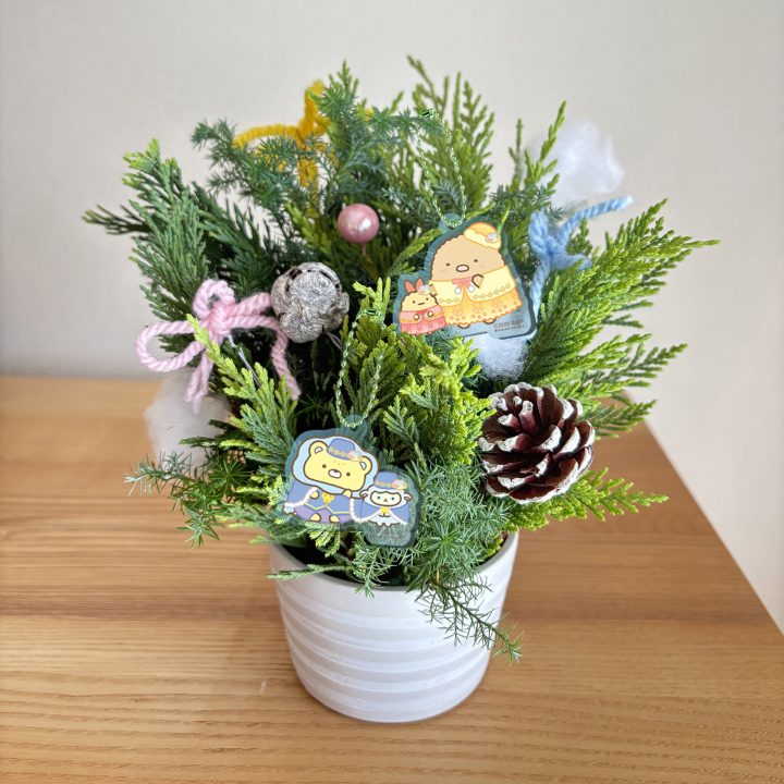 自然素材を使用したminiクリスマスツリーをつくるワークショップを開催。